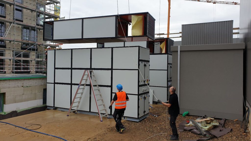 Die Photovoltaik-Anlage auf unserer Lagerhalle ist bereits seit längerem aufgebaut – derzeit folgt die Anlage auf unserem zukünftigen Bürogebäude.